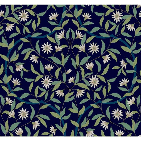 Jasmine Indigo Blue Metallic Pre-pasted Paper Wallpaper 60.75 sq. ft