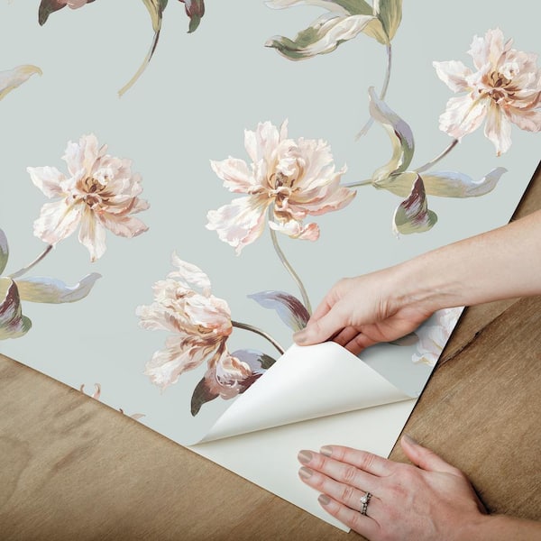 Large Parrot Tulip Blue and Pink Peel and Stick Wallpaper Roll