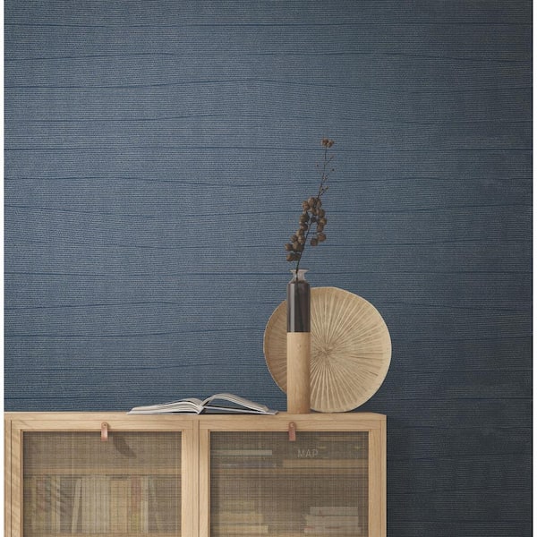 Navy Natural Grid Metallic Non-pasted Non-Woven Paper Wallpaper
