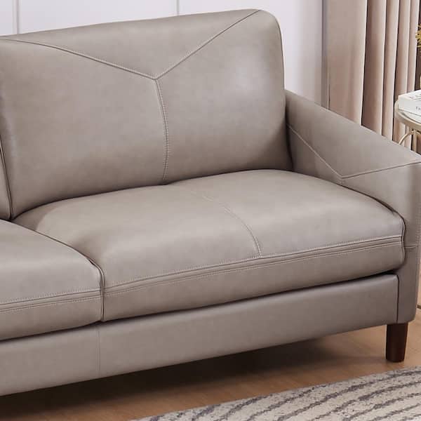 Yorkdale 83.5 in. Square Arm Top Grain Leather Square 2-Seat Sofa in Stone Gray