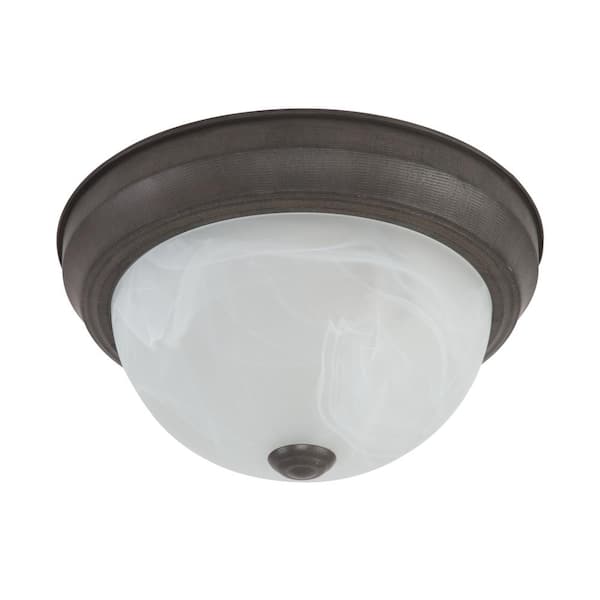 Belen 2-Light Dark Brown Flush Mount with White Marble Glass Shade