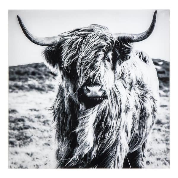 Highland Unframed Greyscale Animals Photography Wall Art 36 in. x 36 in.