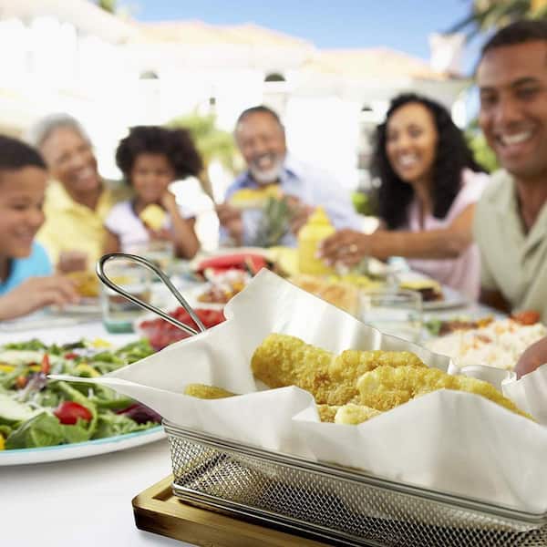 • Includes mesh fry basket and 2 ceramic sauce holders