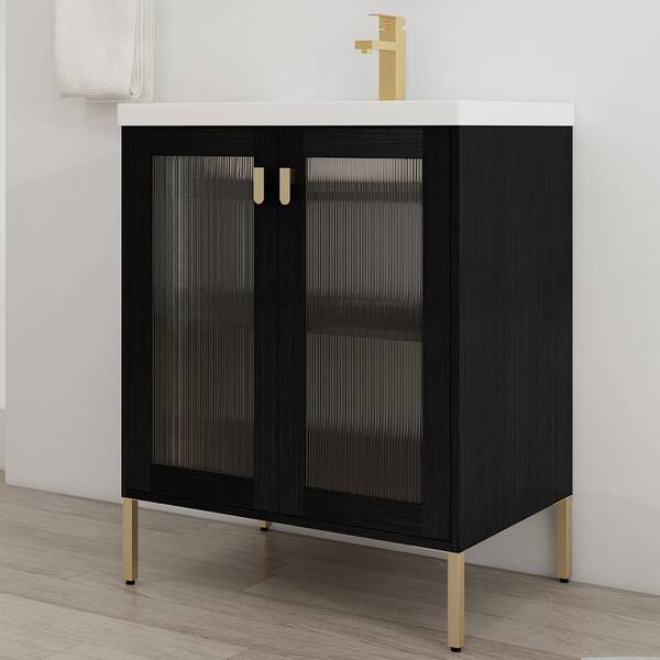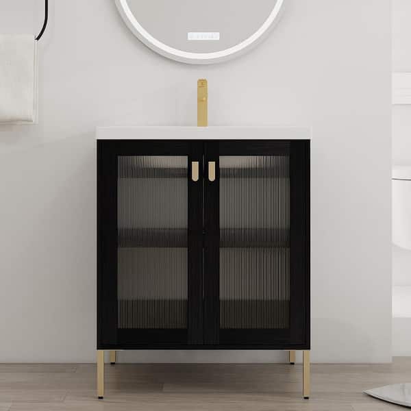Yunus 28 in. W. x 18.5 in. D x 35 in. H Single Sink Freestanding Bath Vanity in Black with White Ceramic Top