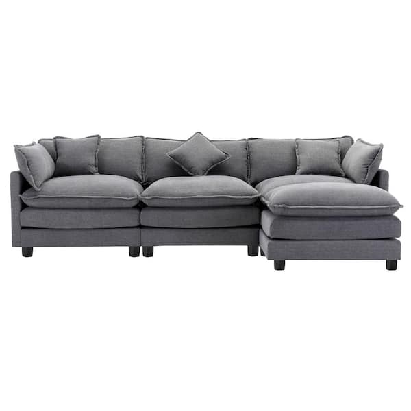 112.2 in Wide Square Arm Chenille L-Shaped Modern Upholstered Sofa in Gray