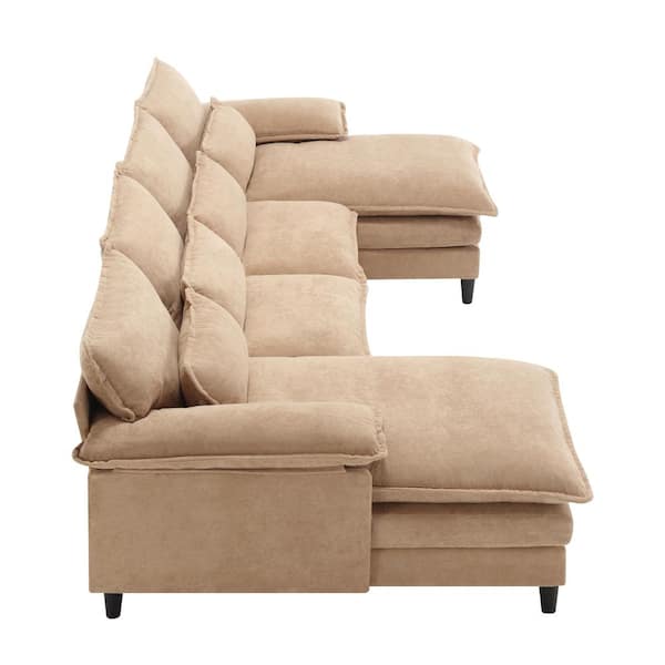 115 in. Wide Pillow Top Arm Creative Polyester U-Shaped Modern Modular Sectional Sofa in Brown