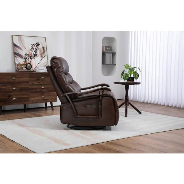Brown Faux Leather Recliners Swivel Rocker Recliner Power Glider Chair Recliner