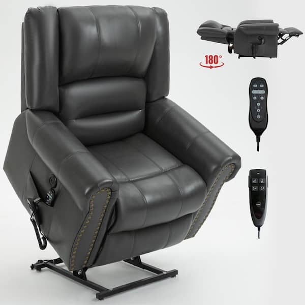 Gray Faux Leather Recliner Heat Massage Dual Motor Infinite Position Up Recliner with USB Port