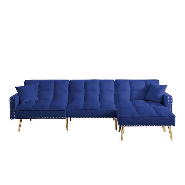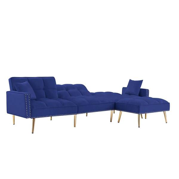 34.64 in. W Twin BLUE Velvet Upholstered Reversible Sectional Sofa Bed