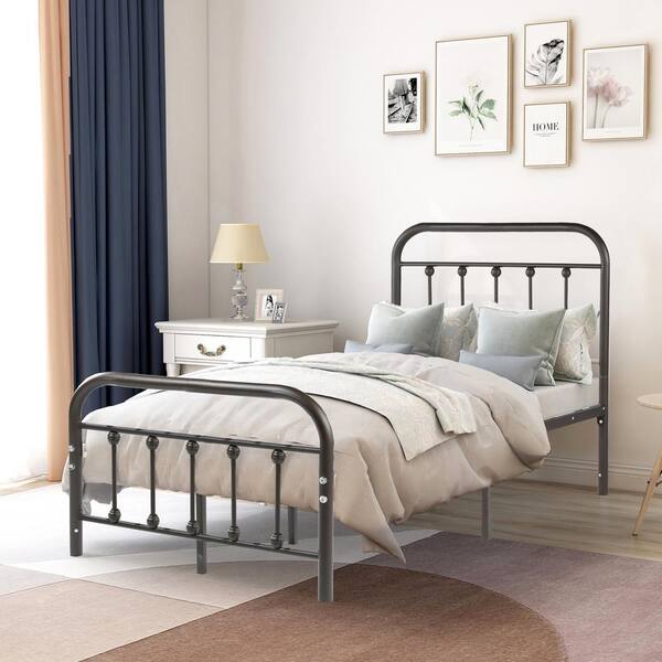 Twin Metal Platform Bed Frame With Headboard, 12.6" Underbed Storage, Noiseless, No Box Spring Needed Brown