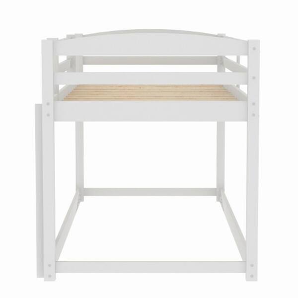 Twin over Twin Floor Bunk Bed with Ladder , White