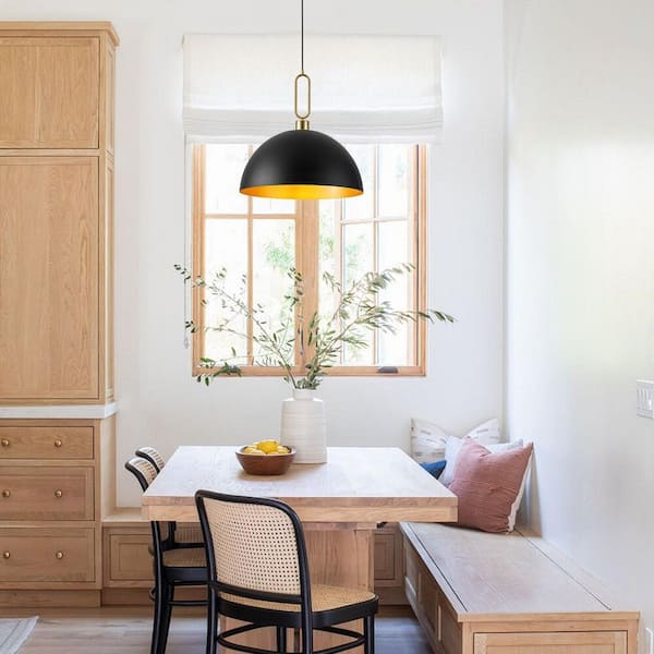1-Light Black Dome Hanging Pendant Light Chandelier Lighting with Metal Shade for Kitchen Island