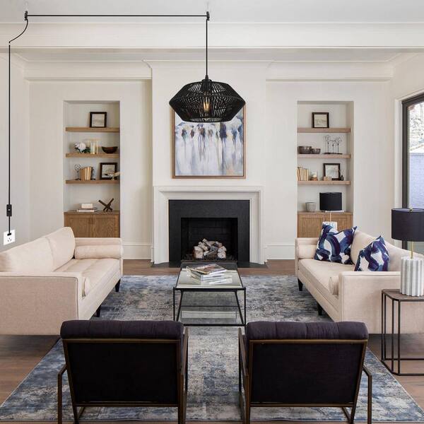 1 Light Black Metal Hanging Pendant Light with Paper Rattan Shade and Plug, No Bulbs Included
