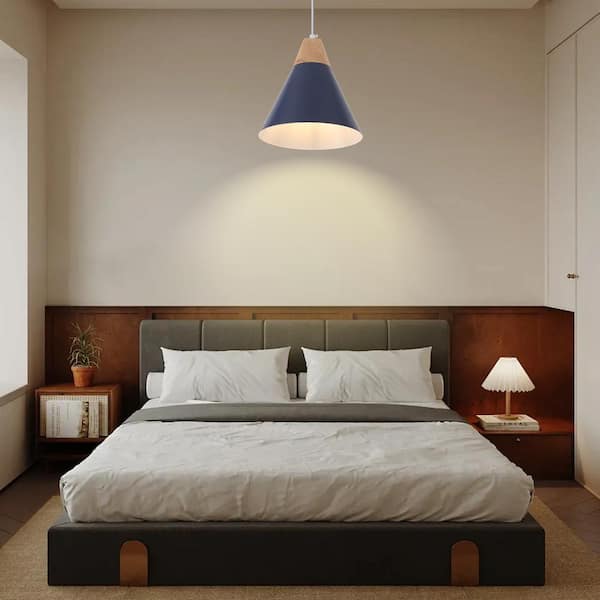 1-Light Blue Modern Industrial Metal Cone Shade Hanging Pendant Light with No Bulbs Included