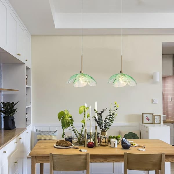 1 Light Brass Frame Industrial Hanging Pendant Light Chandelier with Light Green Glass Shade