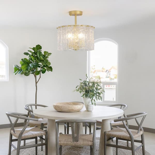 12.5 in. 4-Light Gold Modern Semi-Flush Mount Ceiling Light with Glass Shade