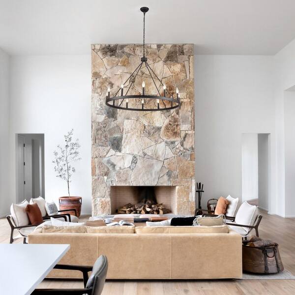 12-Light Antique Black Candle Design Circle Wagon Wheel Chandelier Island Chandelier Lighting for Kitchen Island