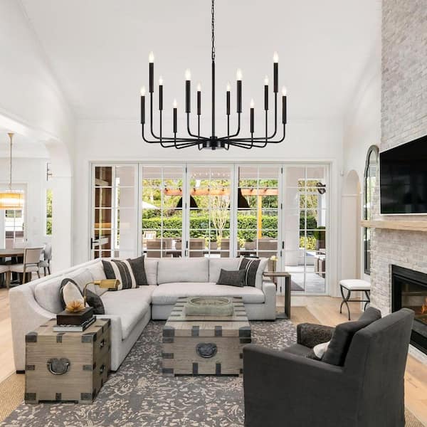 12-Light Black Candlestick Hanging Island Linear Chandelier Lighting Fixture for Kitchen Island