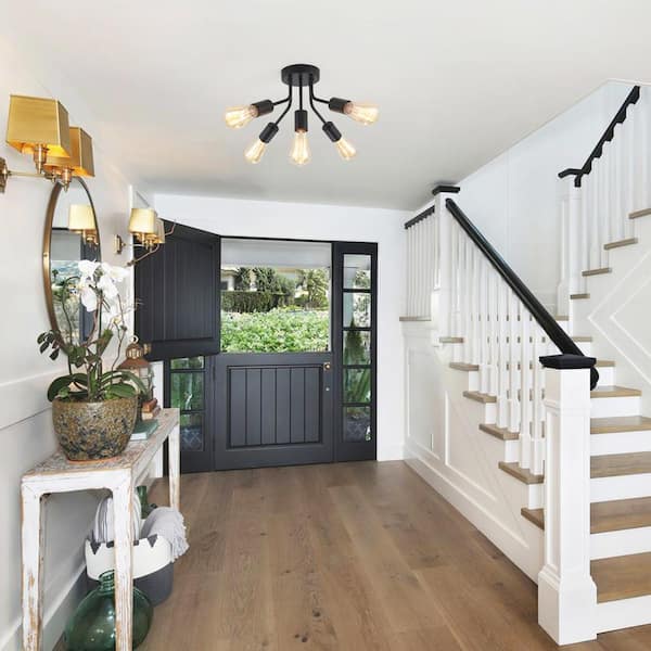 14.76 in. 5-light Matte Black Modern Linear Semi-Flush Mount for Foyer with No Bulbs Included