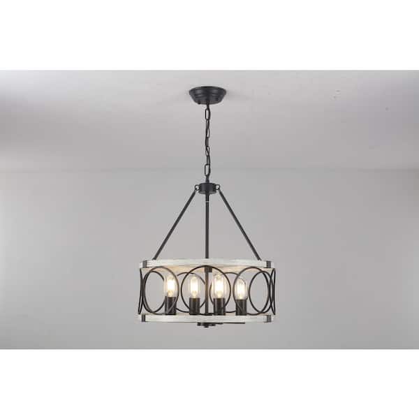 17.12 in. 4-Light Matte Black/Vintage White Chandelier with Metal Circle Shade and No Bulbs Included For Dinning Room