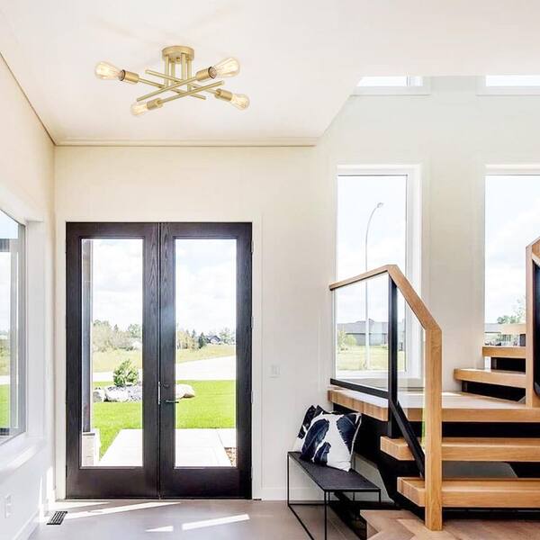 18.5 in. 4-Light Gold Sputnik Semi- Flush Mount for Foyer Dining Room with No Bulbs Included