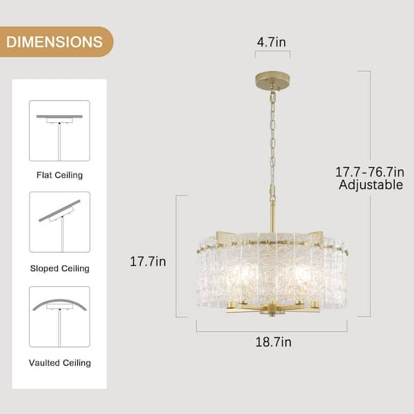 18.7 in. 5-Light Golden Drum Chandelier with Glass Shade and No Bulbs Included For Dinning Room Foyer