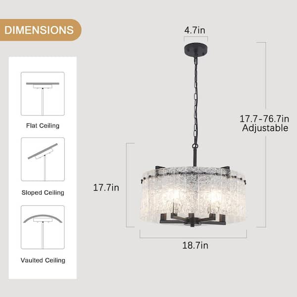 18.7 in. 5-Light Matte Black Drum Chandelier with Glass Shade and No Bulbs Included For Dinning Room Foyer