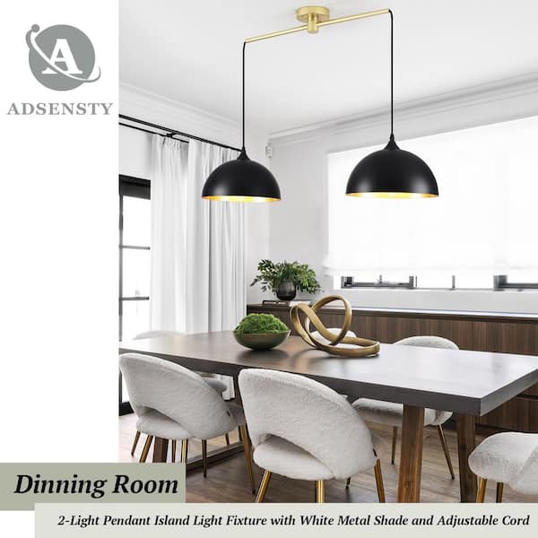 2-Light Black and Gold Hanging Pendant Design Chandelier Light Fixture with Metal Cover