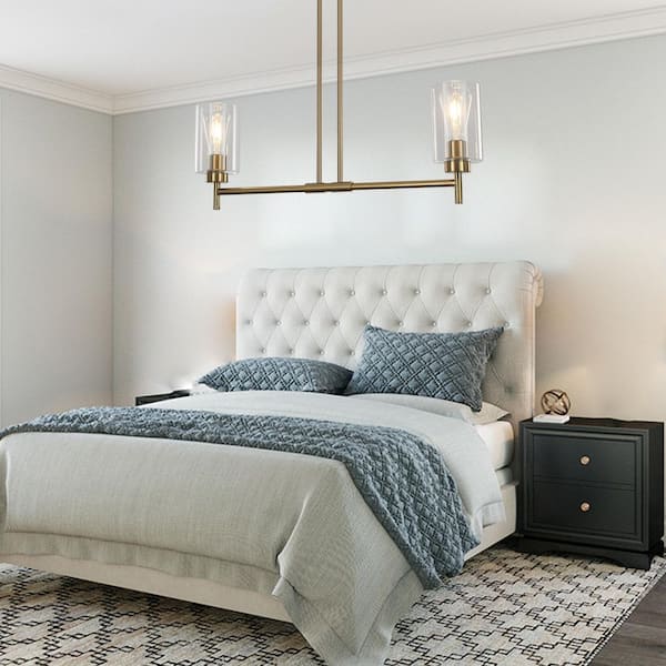 2-Light Golden Industrial Linear Chandelier with Glass Shades for Kitchen Island with No Bulbs Included