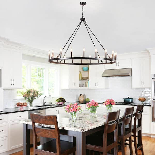 20-Light Black Farmhouse Candle Style Hanging Wagon Wheel Chandelier Lighting for Kitchen Island