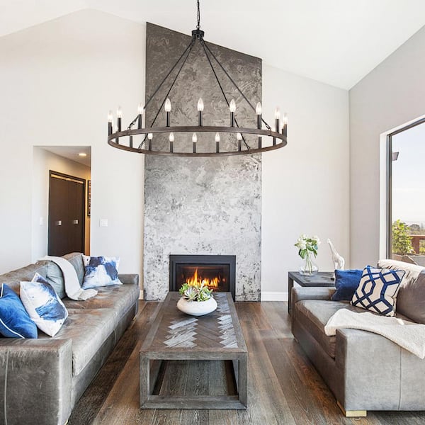20-Light Natural Farmhouse Candle Style Hanging Wagon Wheel Chandelier Lighting for Kitchen Island