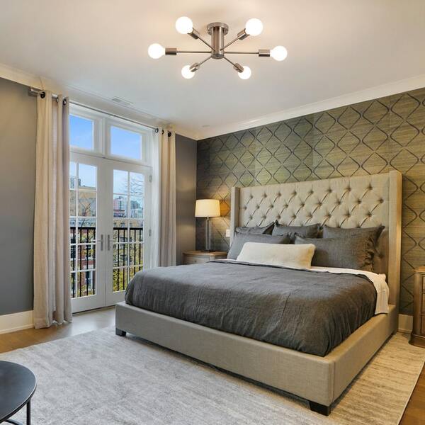 21.81 in. 6-Light Nickel Sputnik Semi- Flush Mount For Foyer Bedroom with No Bulbs Included
