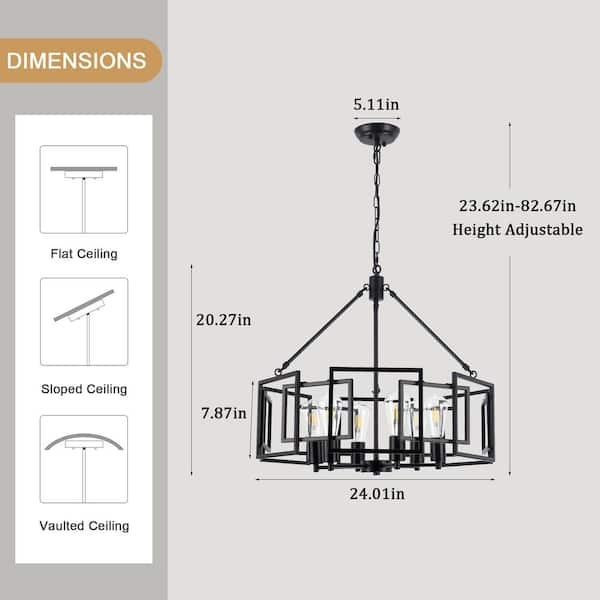 24.01 in. 6-Light Matte Black Drum Chandelier with Metal Splicing Shade and No Bulbs Included For Foyer