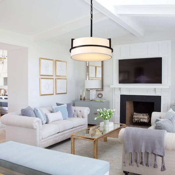 3-Light Black Pendant Design Hanging Linear Chandelier Lighting with Cloth Cover for Kitchen Island