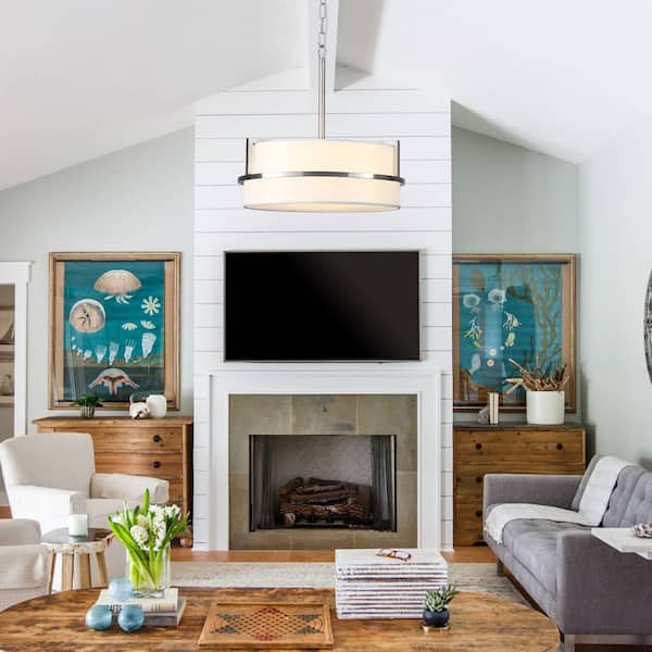 3-Light Nickel Pendant Design Hanging Linear Chandelier Lighting with Cloth Cover for Kitchen Island