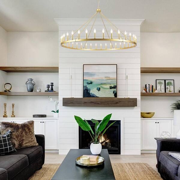 36-Light Golden Classic Wagon Wheel Style Chandelier for Living Room with No Bulbs Included