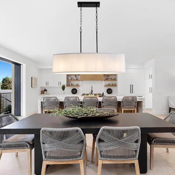 4-Light Black Ellipsoid Hanging Linear Chandelier Lighting Fixture with Cloth Shade for Kitchen Island