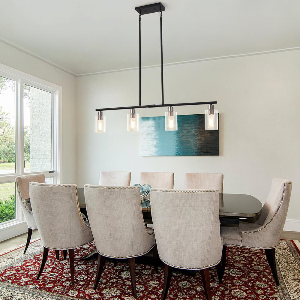 4-Light Black/Nickel Industrial Linear Chandelier with Glass Shades for Kitchen Island with No Bulbs Included