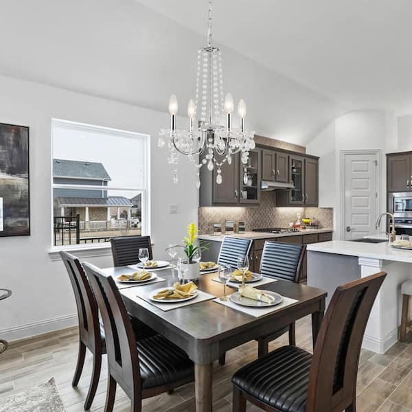 4-Light Chrome Classic Candlestick Crystal Linear Chandelier Lighting for Dining Room Living Room with No Bulbs Included