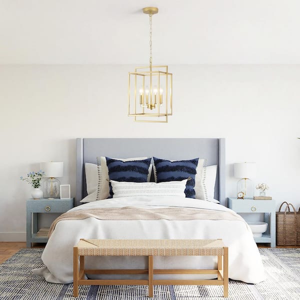 4-Light Gold Candlestick Hanging Linear Chandelier Lighting Cage Ceiling Light for Kitchen Island
