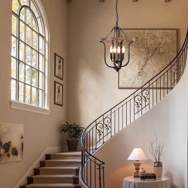 4-Light Natural Traditional Candle Style Chandelier Lighting for Kitchen Island