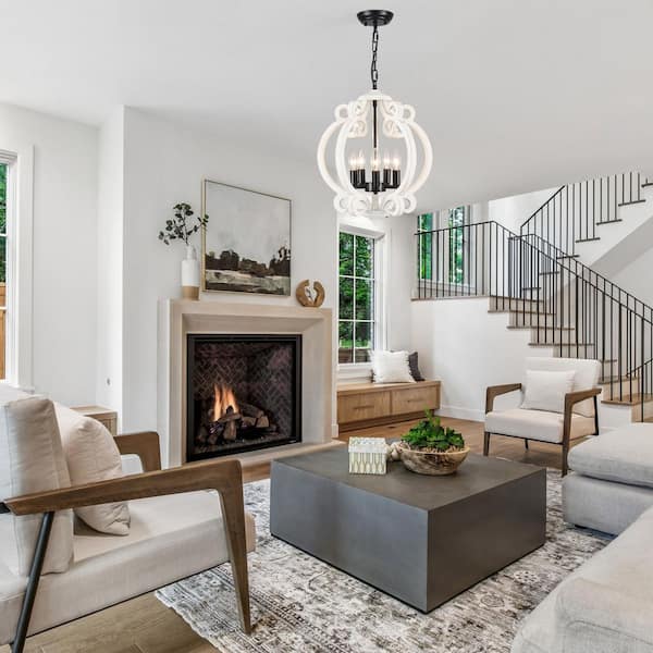 5-Light Black Candle Style Rustic Hanging Linear Chandelier Lighting for Kitchen Island