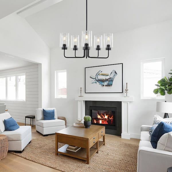 5-Light Black Candlestick Hanging Linear Chandelier Lighting Fixture with Glass Shade for Kitchen Island