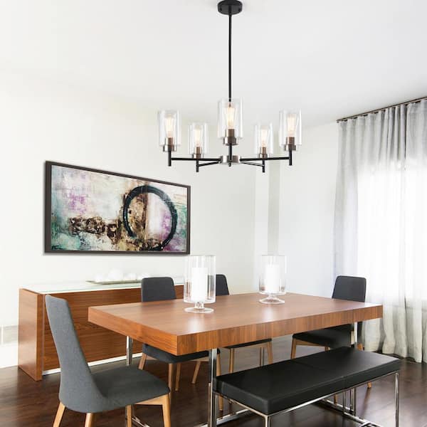5-Light Black/Nickel with glass shade Ship Anchor Style Chandelier for Living Room with No Bulbs Included