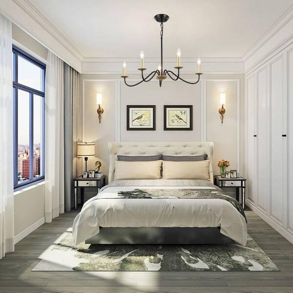 5-Light Black and Gold Modern Candlestick Hanging Linear Chandelier Lighting for Kitchen Island