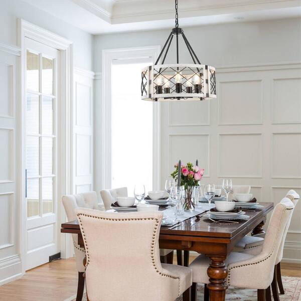 5-Light Black and Gray Vintage Adjustable Drum Chandelier Candlestick Linear Chandelier for Living Room