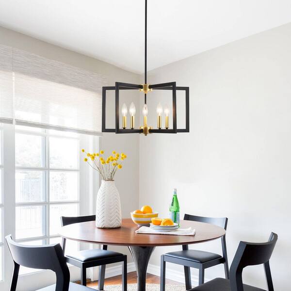 5-Light Farmhouse Rectangular Black and Gold Hanging Linear Island Chandelier Lighting for Kitchen Island