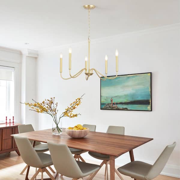 5-Light Gold Candle Design Hanging Linear Chandelier Lighting for Kitchen Island