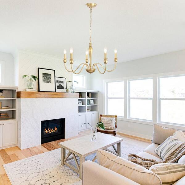5-Light Golden Classic Farmhouse Candle Style Chandelier for Living Room Bedroom with No Bulbs Included