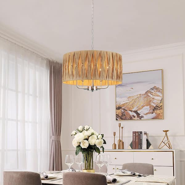 5-Light Nickel Candle Design Hanging Linear Chandelier Lighting Fixture with Lafite Shade for Kitchen Island